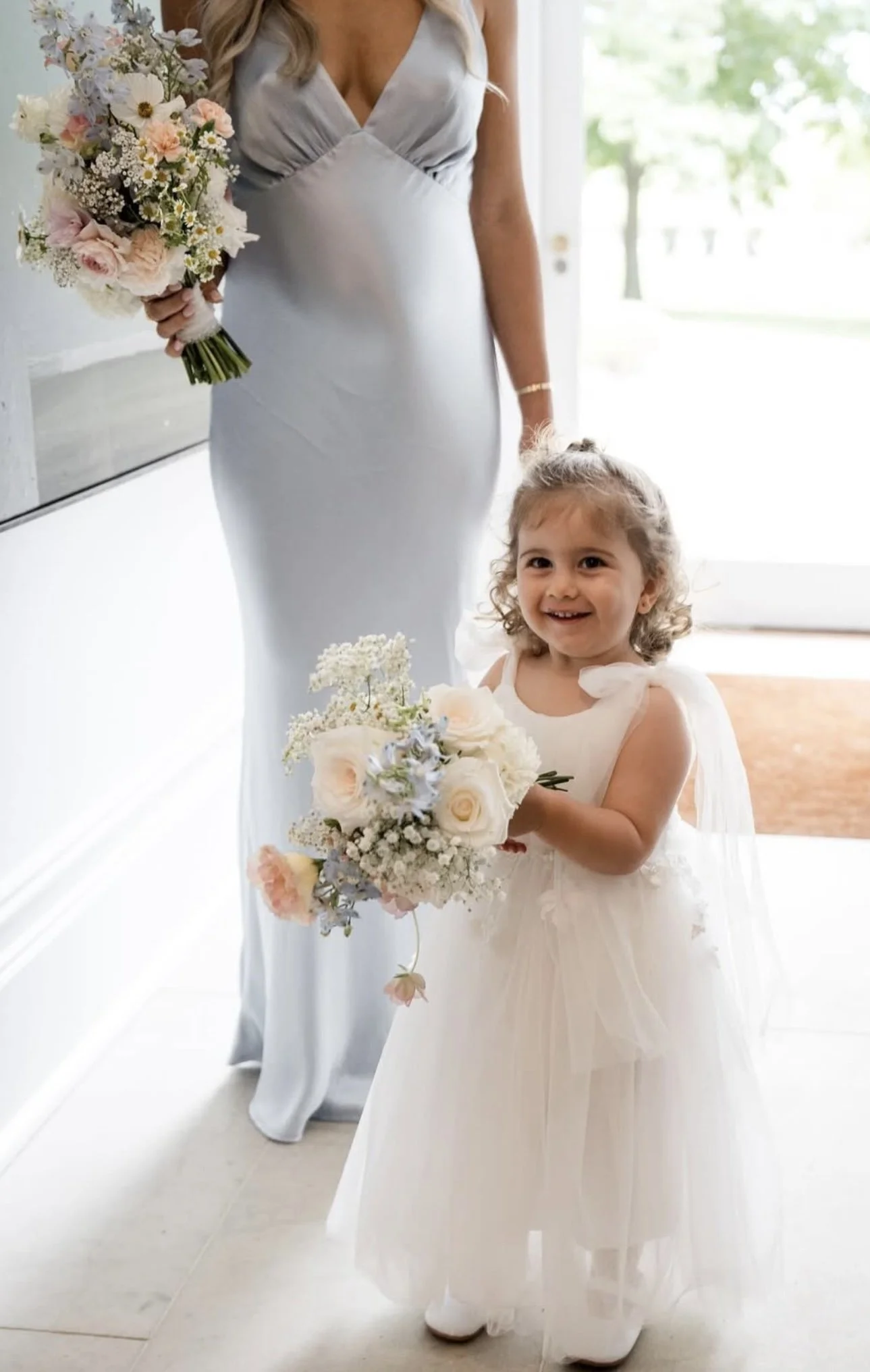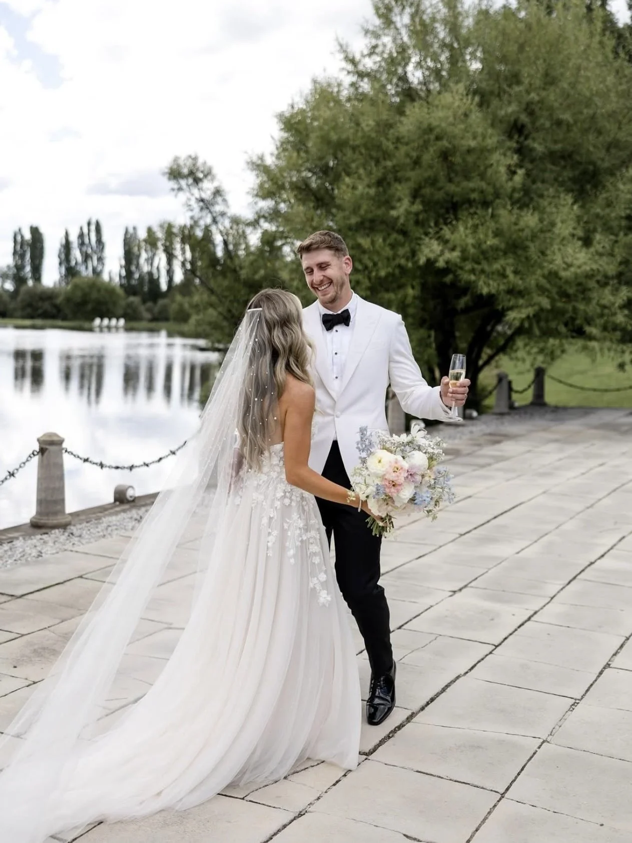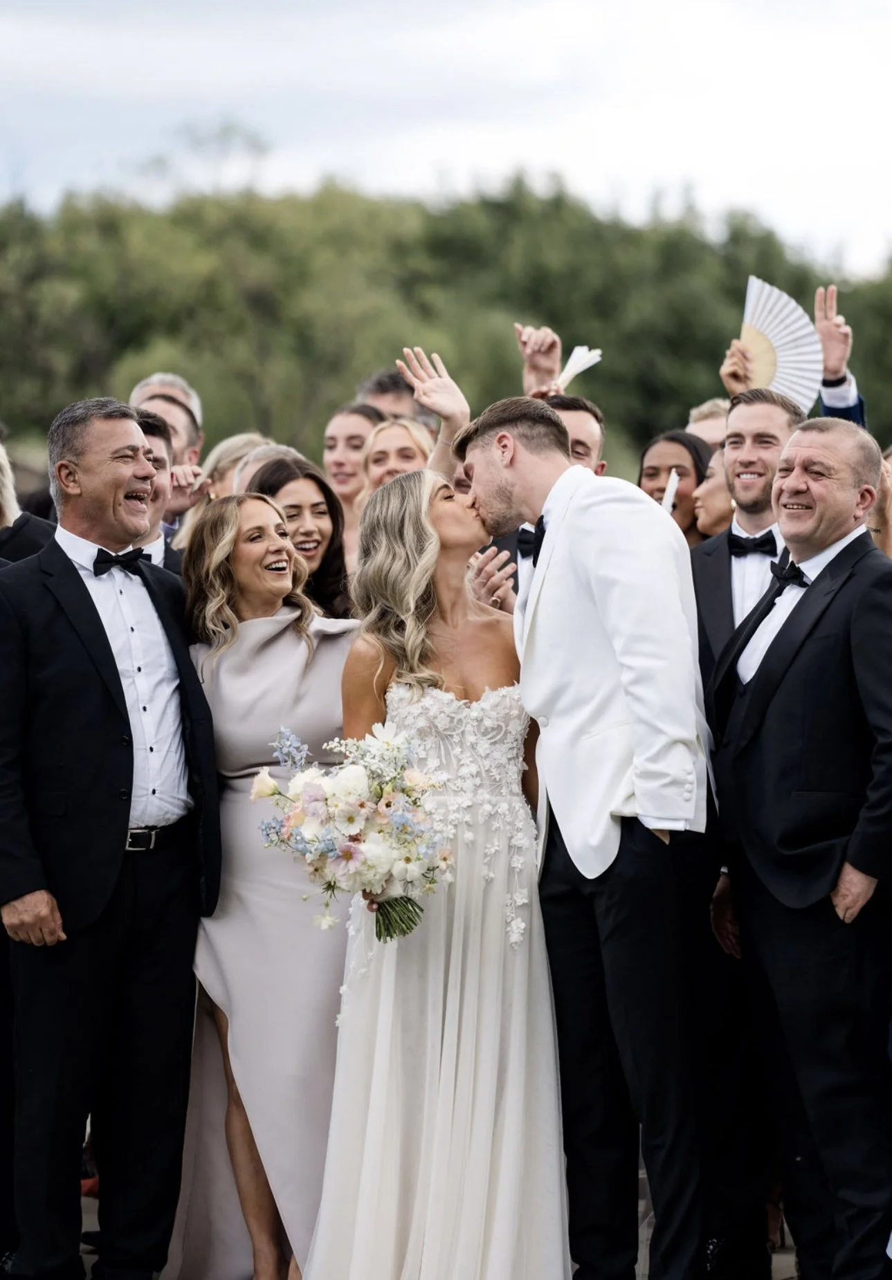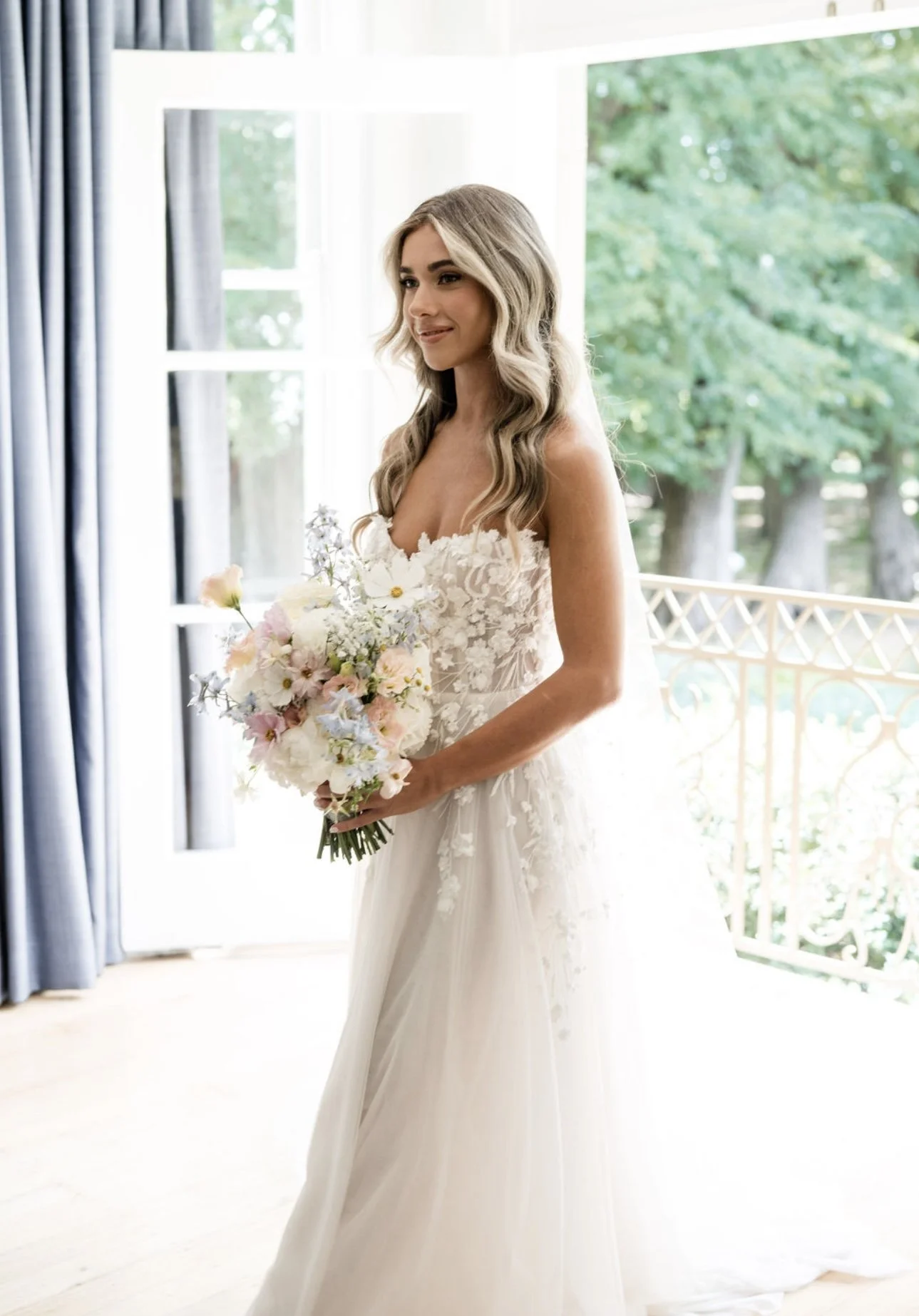 A celebration built on texture, colour, and creative freedom. Soft, cloud-like puffs of baby’s breath lined the aisle, leading to an asymmetrical arbour that served as the ceremony’s dramatic sculptural centrepiece. Vibrant, colourful bouquets added a playful contrast to the delicate white blooms. Every floral element from the ceremony was thoughtfully repurposed for the reception, where lush white roses and reimagined baby’s breath installations created a cohesive, romantic atmosphere with just the right touch of boldness.