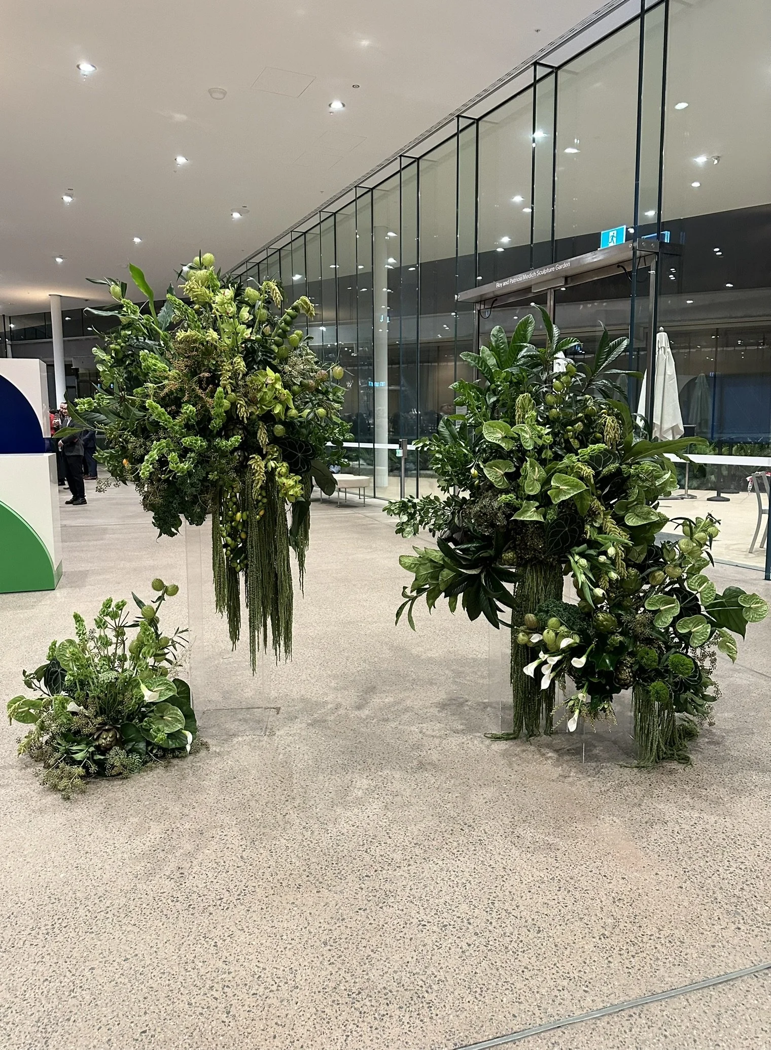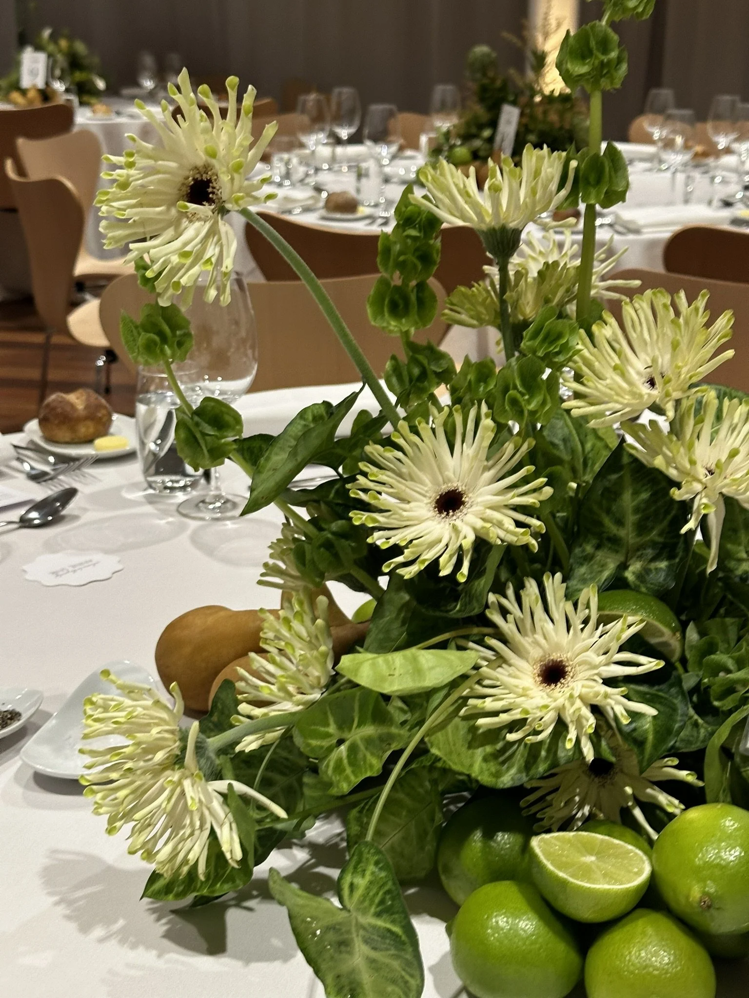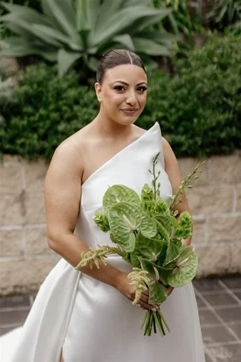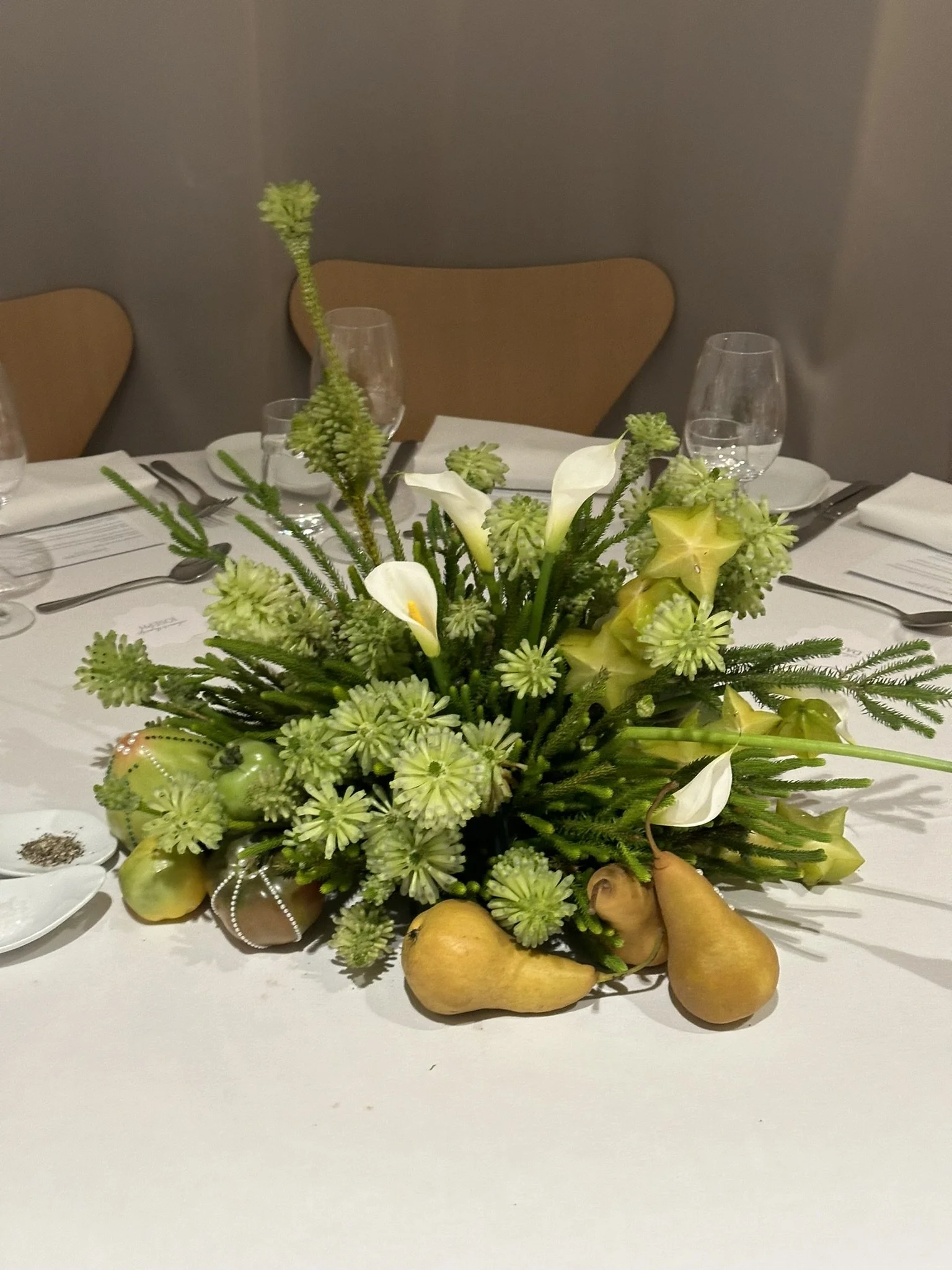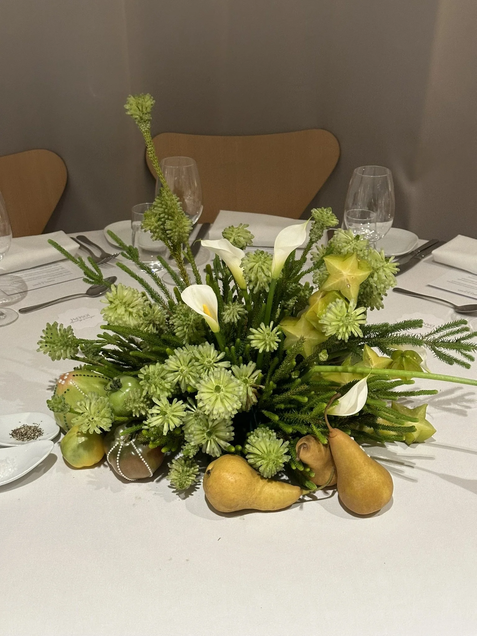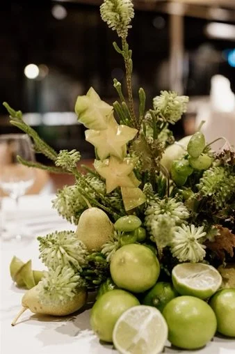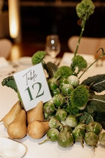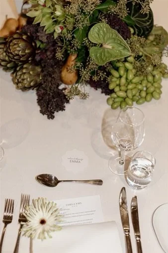 Emma and John wanted a very simple, modern, and clean look for their ceremony and reception. Emma has a love for fruit branches, fresh fruit, and greenery, and together they preferred a natural, organic palette over bright colours. We created an all-green wedding, incorporating pearled fruit and styling with vegetables for a unique, sculptural touch. With the NSW Art Gallery as the backdrop, every detail felt like a work of art—especially the bar, which became a moment of pure design.
